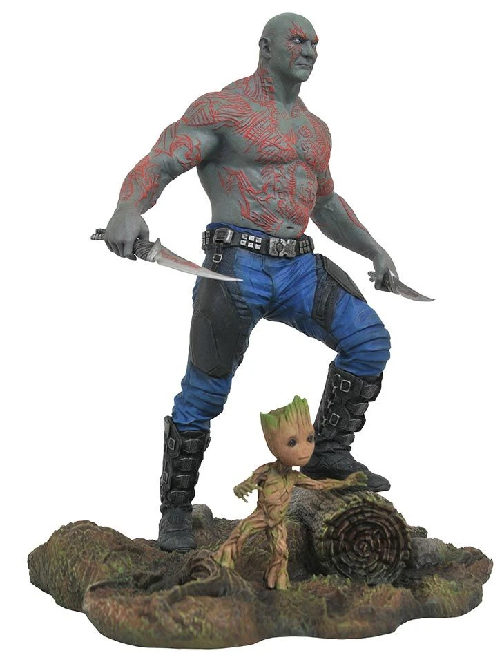Hochwertige und perfekt akzentuierte Diamond Select “Marvel Gallery” Statue von Drax & Baby Groot aus dem Kinospektakel Guardians of the Galaxy Vol. 2.