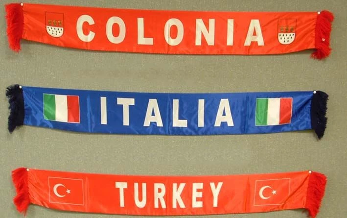 Auf dem Produktbild sind verschiedene Varianten zu sehen, der Artikel besteht aus einem einzelnen Fanschal der Kölner Variante.