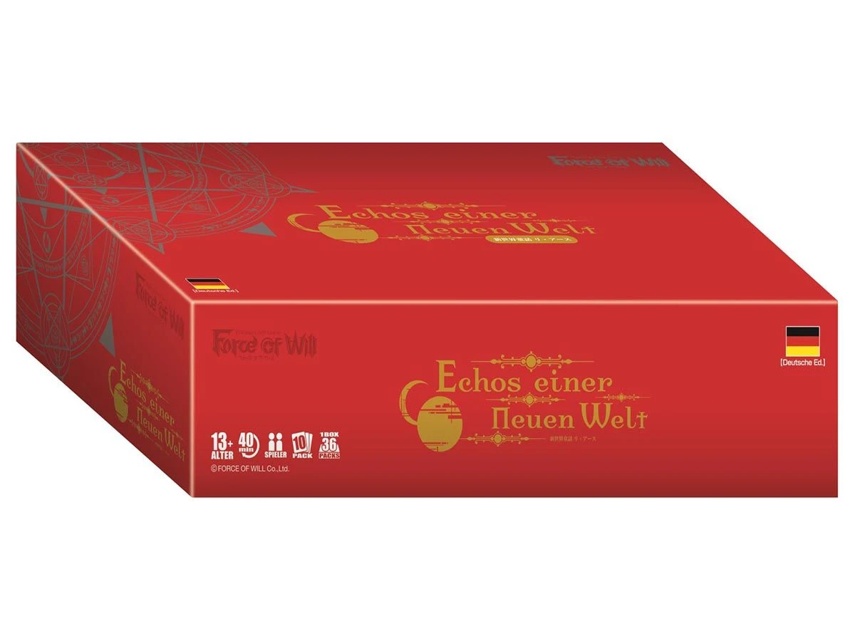 “Echos einer neuen Welt” ist die vierte und letzte Boosterserie im Lapis-Zyklus des Force of Will TCG und bildet darüber hinaus den krönenden Abschluss der aktuellen Rahmenhandlung, die im Grimm-Zyklus ihren Anfang nahm und im Alice-Zyklus fortgeführt wurde, also insgesamt drei Zyklen umspannt.