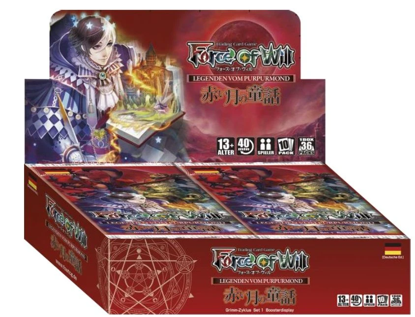 Legenden vom Purpurmond ist die erste Boosterserie im Grimm-Zyklus des brandneuen Force of Will TCG und erscheint gleichzeitig mit der zweiten Boosterserie Das Fliegende Schloss und die Zwei Türme.