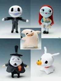 Einzelnes Nightmare Before Christmas Plüsch aus Serie 1. Folgende fünf Charaktere stehen zur Auswahl: Jack, Sally, Mayor, Zero und Oogie Boogie.