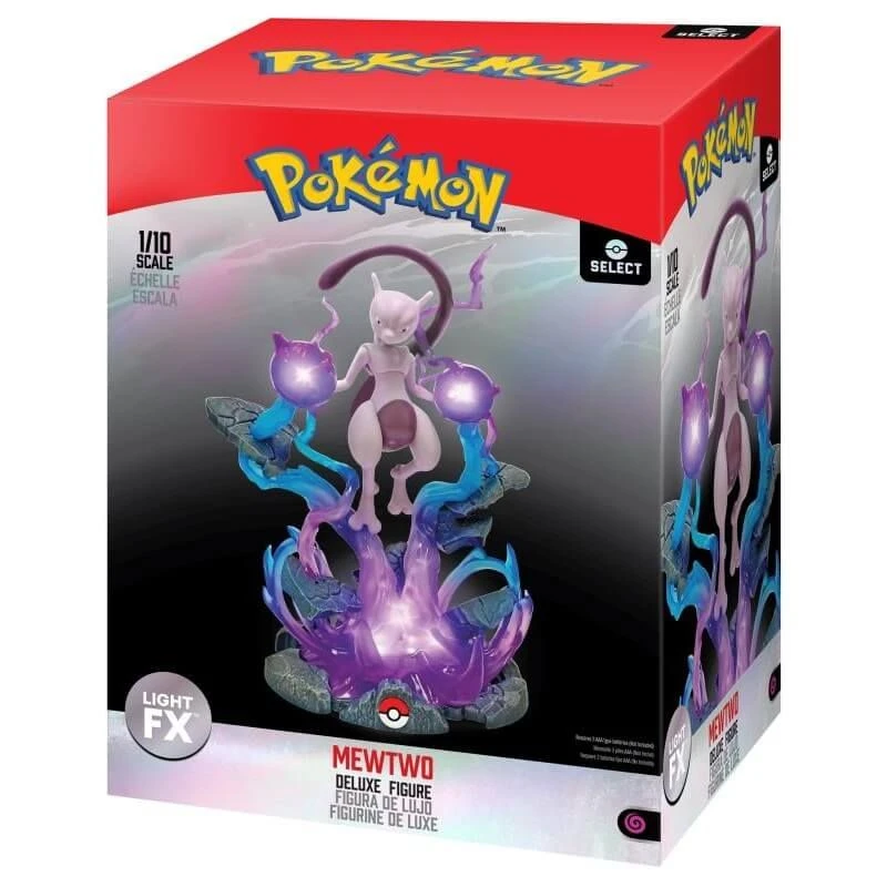 Die 25 cm große Statue und hat eine LED Leuchtfunktion verbaut. Ein Druck auf den Pokeball genügt und schon erstrahlen Mewtwo’s Energiebälle. Die Figur wird mit einer Geschenkbox ausgeliefert.