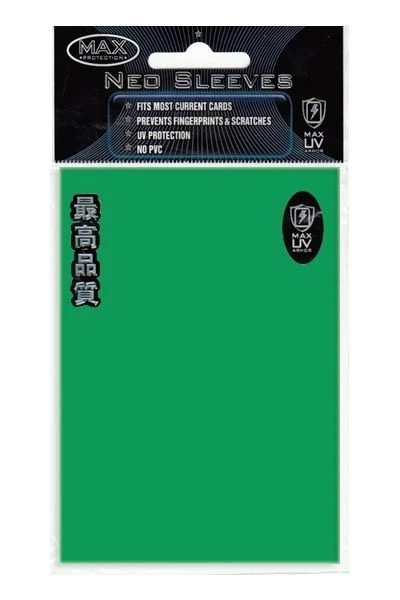 50 Schutzhüllen für Sammelkarten im Standardformat. Farbe (Rückseite): Grün.