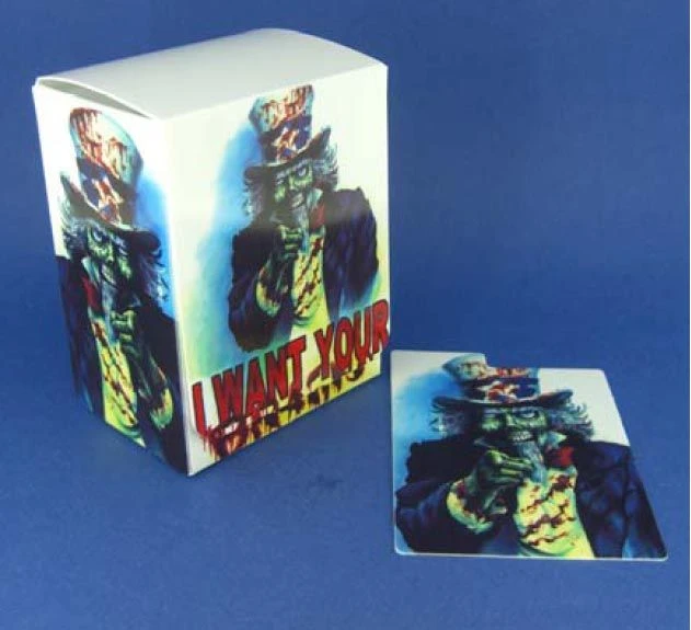 Deckbox I Want Your Brains im Hochformat. Verschlussart: Klettverschluss, Motiv: I Want Your Brains, Format: alle gängigen Sammelkarten, Material: Kunststoff.