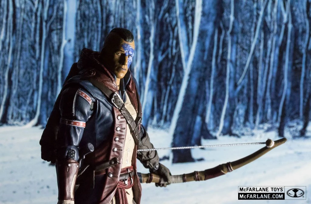 McFarlane Serie 5 Actionfigur von Connor mit Gesichtsbemalung aus dem Videospiel Assassin’s Creed.