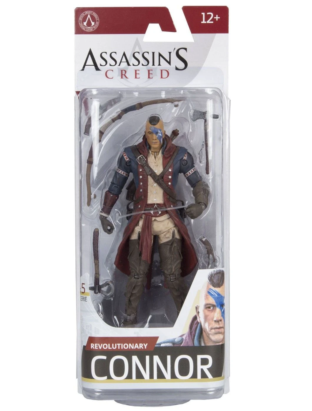 McFarlane Serie 5 Actionfigur von Connor mit Gesichtsbemalung aus dem Videospiel Assassins Creed.