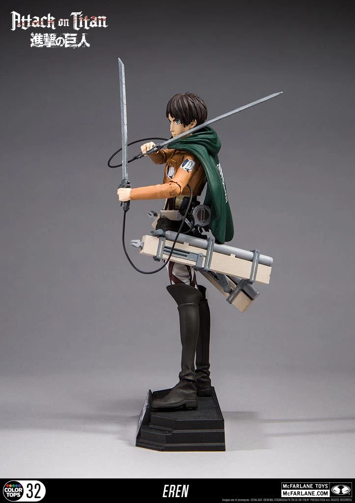 McFarlane Color Tops Figur von Eren Jaeger im klassischen 7-Inch Format aus der erfolgreichen Mangaserie “Attack on Titan”. Eren Jaeger kommt mit seinen Waffen und weiteren Zuzbehörteilen.