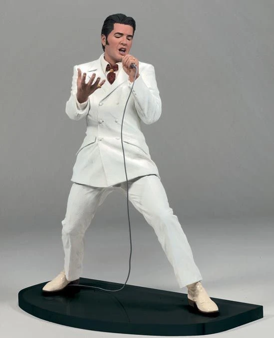 Diese wunderschöne Figur vom King of Rock n Roll zeigt Ihn bei seinem Auftritt beim Comeback Special 1968. Als Hommage an Elvis Presley präsentiert Ihn McFarlane im weißen Gospel Outfit. Elvis hat seit seinen Anfängen in einem schwarzen Kirchenchor mitgewirkt. Die Figur ist ca. 18cm hoch und kommt inklusive Base.