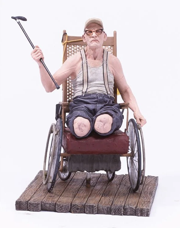 McFarlane Actionfigur von Old Monty aus der Movie Maniacs Serie 7 (2004).Größe: ca. 15cm, Verpackung: Clamshell, Beweglich am Nacken und beiden Oberarmen. Mit abnehmbarer Brille, Kolostomiebeutel, Stock und Base. Die Version von Old Monty stammt aus dem Remake des Horrorfilms Texas Chainsaw Massacre.
