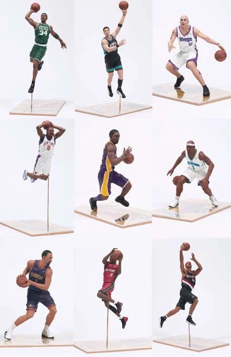 Auf dem Produktbild sind alle Figuren zum Vergleich abgebildet, bitte wähle. Figur: Baron Davis, Eddie Jones, Juwan Howard, Kobe Bryant 2, Latrell Sprewell, Mike Bibby, Paul Pierce, Rasheed Wallace;