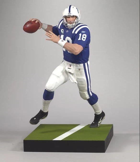 Football Figur vom amerikanischen Spieler Peyton Manning – 4. Edition – aus McFarlanes NFL Serie 21. Geboren: 24. März 1976, Trikotnummer: 18, Position: Quarterback, Verein: Indianapolis Colts. McFarlanes Sports Picks: NFL Football Serie 21, Größe: ca. 15cm (6-Inch), Format: Actionfigur, Verpackung: Blister Card.