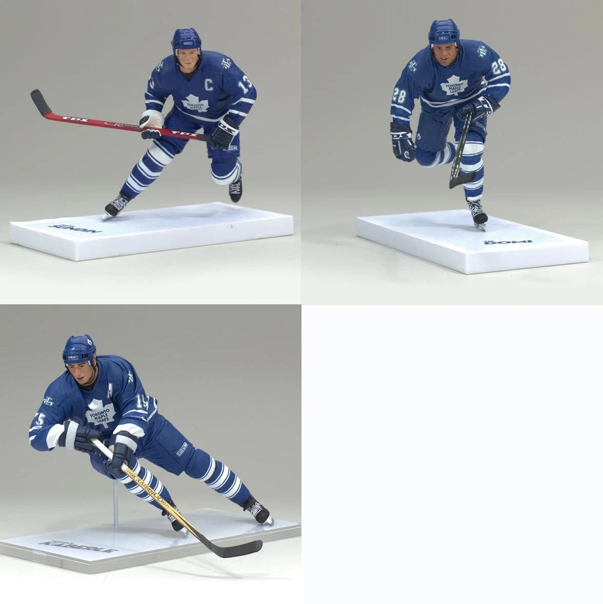 Figuren 3er Set mit den NHL Spielern Mats Sundin. Tie Domi und Tomas Kaberle bei den Toronto Maple Leafs. Die Figuren sind jeweils ca. 15cm hoch (6-Inch Format) und kommen zusammen in einer Windowbox verpackt.