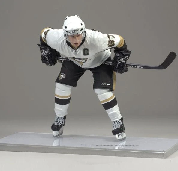 McFarlane Hockeyfigur vom NHL Spieler Sidney Crosby – 2. Edition. Geboren: 7. August 1987, Trikotnummer: 87, Position: Center, Verein: Pittsburgh Penguins. McFarlane Hockey Serie 16, Größe: 6-Inch, Format: Actionfigur, Verpackung: Clamshell.