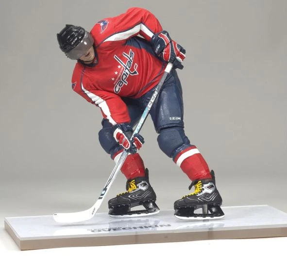 McFarlane Hockeyfigur vom NHL Spieler Alexander Ovechkin, 2. Edition. Geboren: 17. September 1985, Trikotnummer: 8, Position: Left wing, Verein: Washington Capitals. McFarlane Hockey Serie 17, Größe: 6-Inch, Format: Actionfigur, Verpackung: Clamshell. Die Figur kommt mit Stick, Puck und Base.