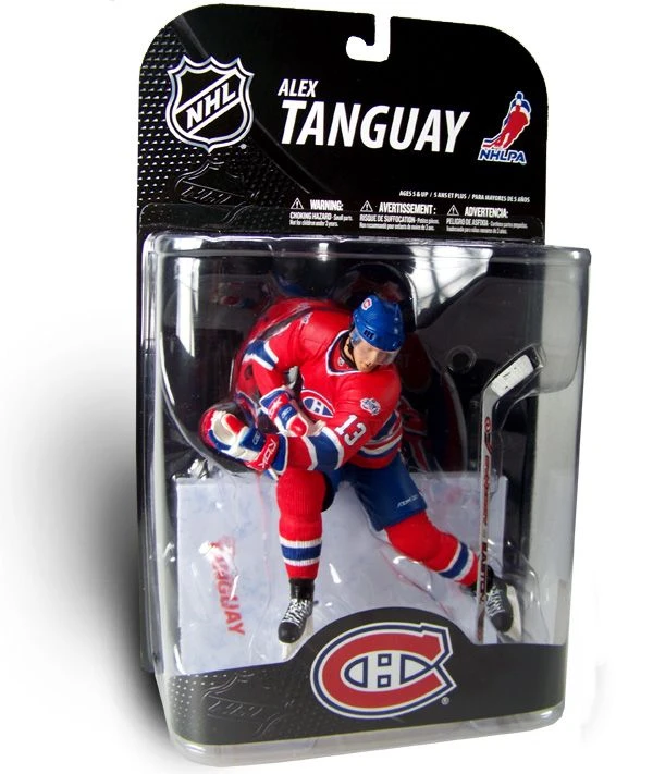 Eishockey-Figur vom kanadischen NHL Spieler Alex Tanguay. Geboren: 21. November 1979, Trikotnummer: 13, Position: Linker Flügel, Verein: Montreal Canadiens. McFarlane Hockey Serie 21, Größe: ca. 15cm (6-Inch), Format: Actionfigur, Verpackung: Blister Card.