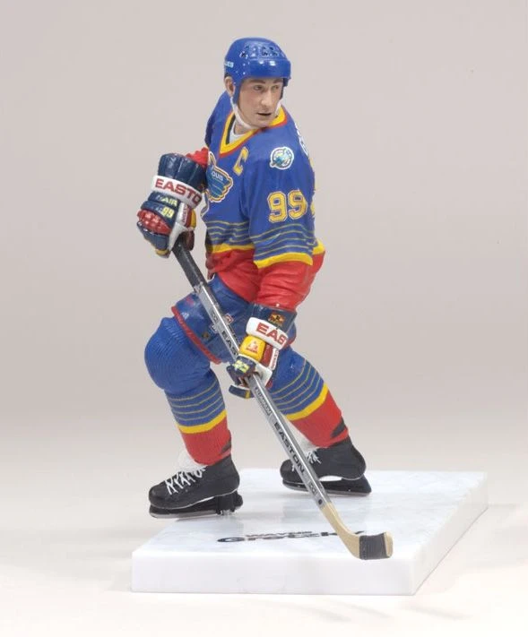 Figur von der NHL Legende Wayne Gretzky aus McFarlanes Legends Serie 5. Wayne Gretzky im Dress der St. Louis Blues, Verpackung: Clamshell, Größe: ca. 15cm.
