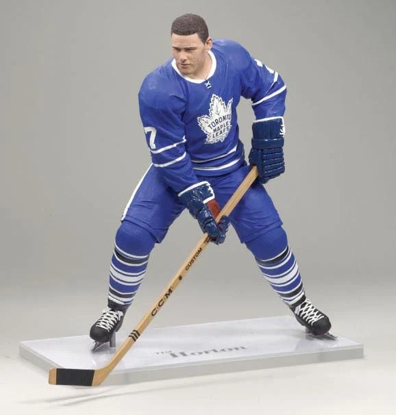 NHL Figur vom kanadischen Spieler Tim Horton aus McFarlanes Hockey Legends Serie 8. Geboren: 12. Januar 1930, Trikotnummer: 7, Position: Verteidiger, Verein: Toronto Maple Leafs. Größe: ca. 15cm (6-Inch), Format: Actionfigur, Verpackung: Blister Card.