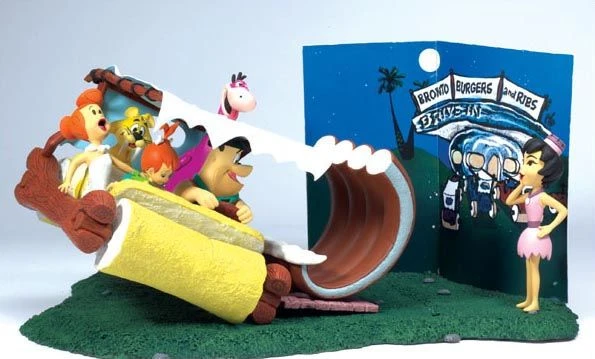 McFarlanes Deluxe Boced Set mit dem steinzeitlichen Gefährt der Feuersteins beim Drive-In.
