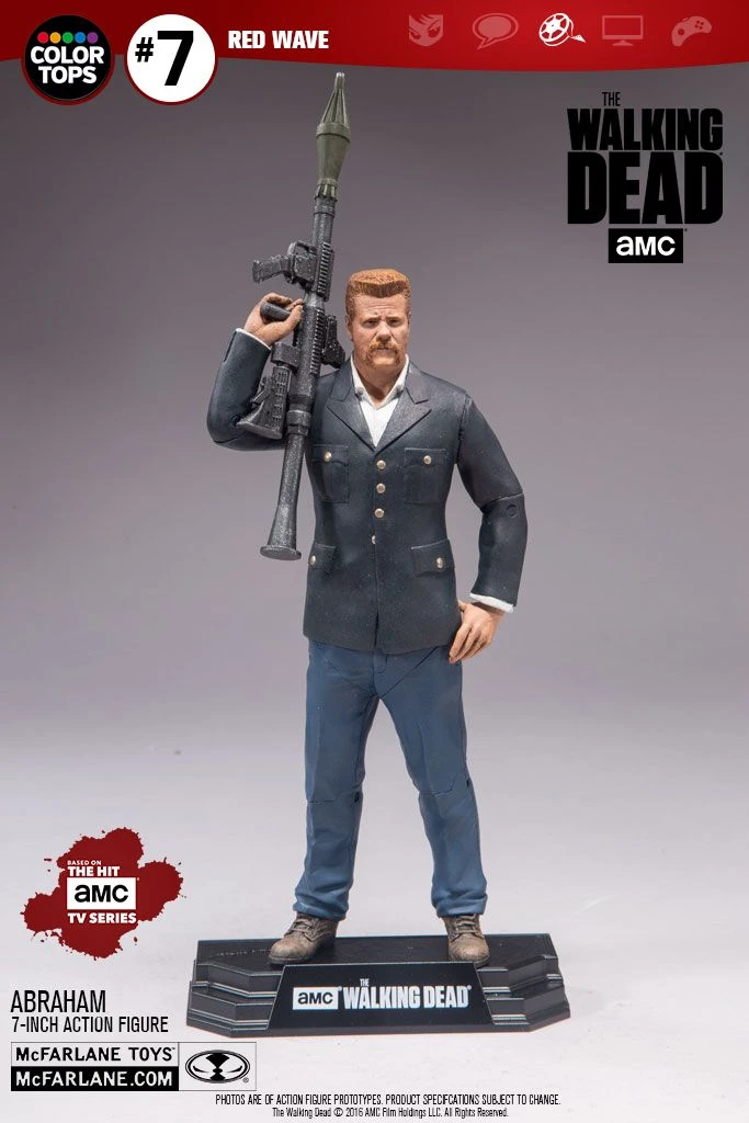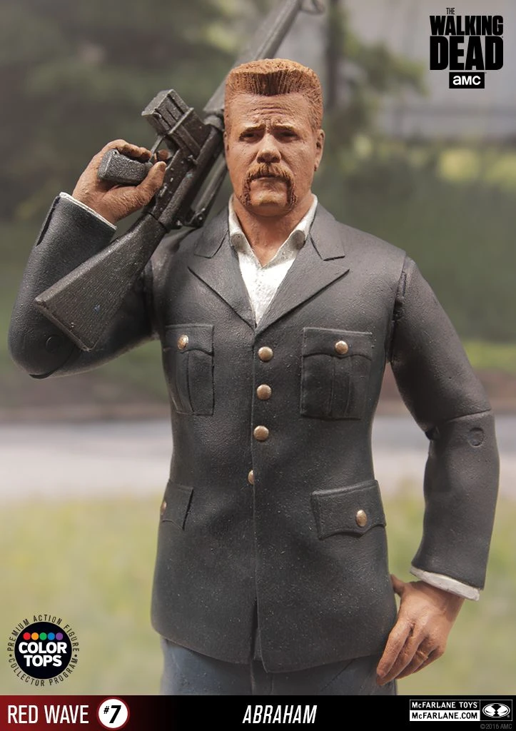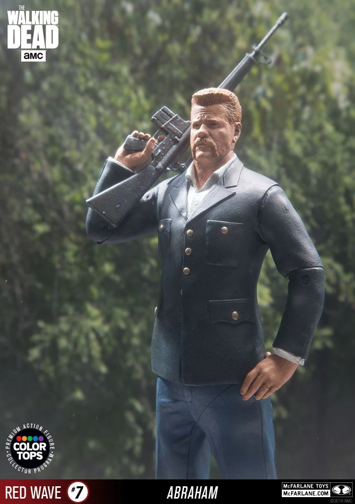 McFarlane Color Tops Figur von Abraham Ford im klassischen 7-Inch Format aus der erfolgreichen Survival-TV-Serie “The Walking Dead”. Abraham Ford kommt inklusive Granatwerfer und Sturmgewehr als Zuzbehörteile.